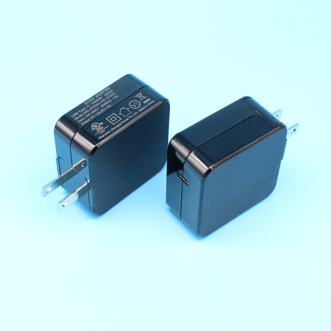 Model:JHD-AP030U-PD-CF205,Output:5V3A/9V3A,Safety Approval:UL,FCC,CB,CE,PSE,CCC.This USB C power adapter features the Type-C port with Power Delivery 3.0, providing an output of Max 30W--5V/3A, 9V/3A. It can fast charge for your PD compatible devices,High-speed charging for Apple phones, iPad, laptops, and most USB-C devices.
